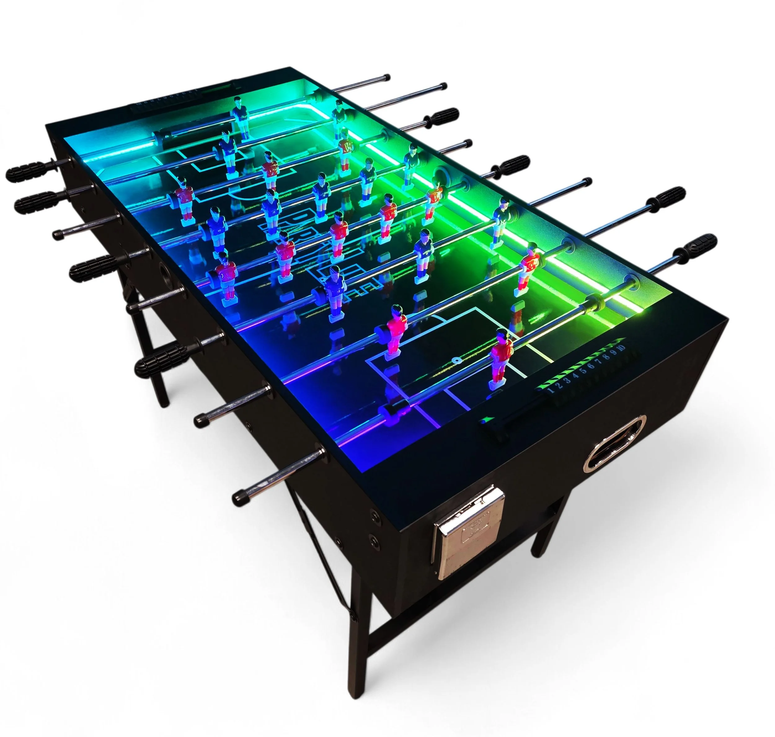 Includes (8) steel, ball-bearing pucks that effortlessly glide across the table surface